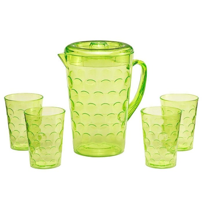Jarra Acrílico Com 4 Copos Agua Suco Gelo Decorativo Verde