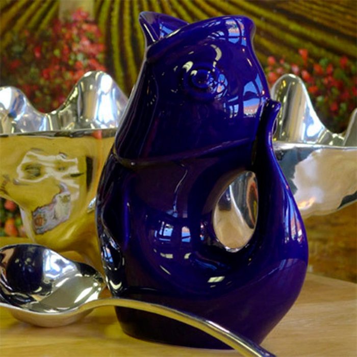 Jarra de cerãmica formato peixe emite som glu glu glu ao servir liquidos devido ao formato anatômico.
