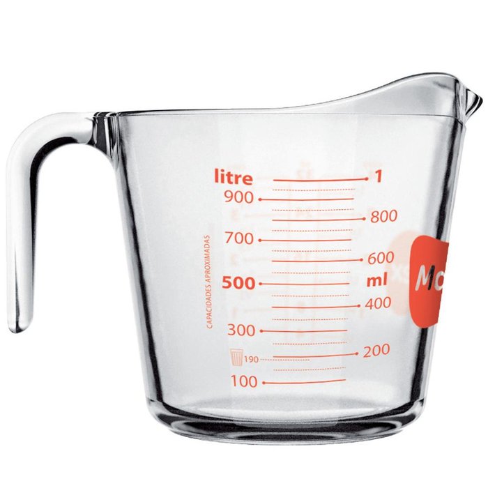 Jarra Medidora de Vidro 1l Marinex Jarro de Medição com Alça e Bico Direcionador