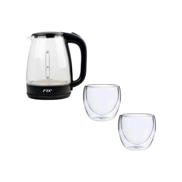 Jarra Vidro Elétrica 1,8l + Copo Vidro Duplo 140ml 2p Transparente