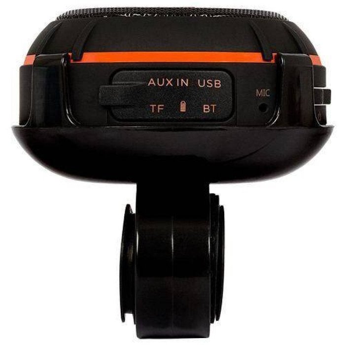 Jbl Wind é uma caixa bluetooth para acoplagem em motos e bicicletas que você consegue colocar com o suporte para guidão (incluso) ou onde quiser com o mosquetão (incluso).