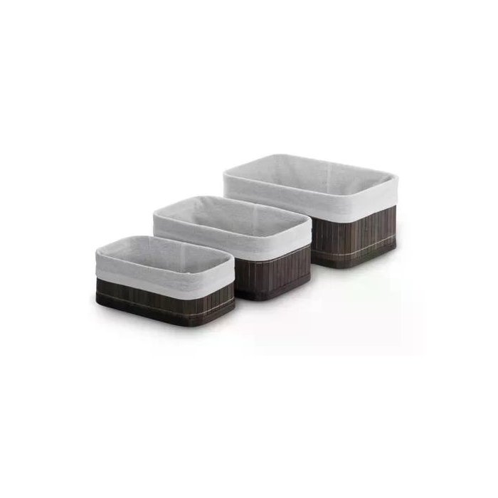 Jg 3 Pçs de Cestos Organizadores Bambu com Tecido Mek Tam Gg