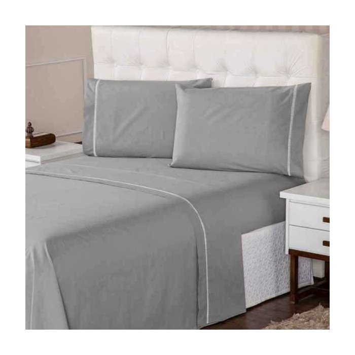 Jg de Lençol 400 Fios P.Palito Casal Prata Casa Dona
