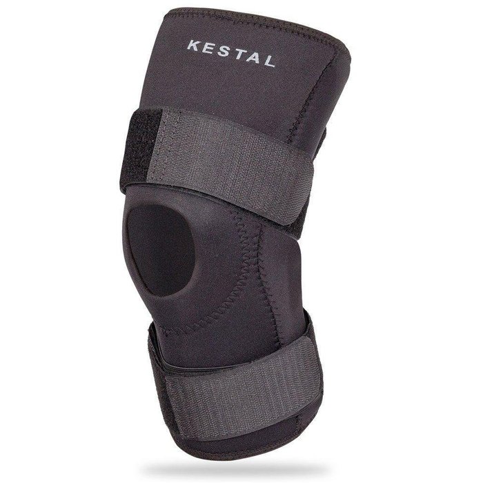 A Joelheira Articulada Kestal confeccionada em 85% SBR e 15% poliamida possui articulações metálicas laterais em 100% alumínio com trava, que estabilizam o joelho e impedem a sua hiperextensão. Pode ser utilizada para conter a flexão do joelho através da inversão das dobradiças. Com fechamento duplo em velcro, proporciona maior firmeza e melhor ajuste. Prevenção e recuperação de lesões nas regiões do joelho tais como condromalácia, entorses, edemas, distensões, contusões, tendinites, luxações, instabilidade da rotula, instabilidade rotatória, artrose, artrites reumatoides, lesões ligamentares e em pós-artroscopia do joelho. Após a retirada de imobilização, auxilia no processo de reabilitação do paciente. ESPECIFICAÇÕES TÉCNICAS