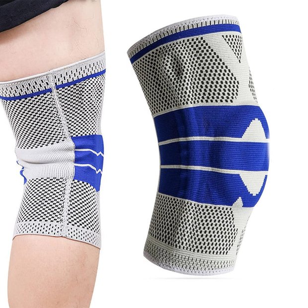 Joelheira Ortopedica Gel Silicone Compressao Suporte Exercicio Muscular Joelho Pernas Patela Cinza e Azul