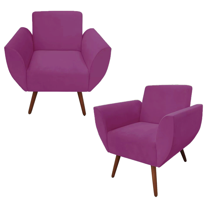 Jogo 02 Poltrona Estofada Flora Salão Beleza Clinica Consultório Rosa Pink - LM DECOR