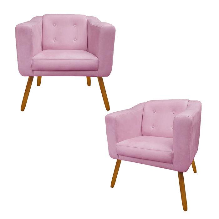 Jogo 02 Poltrona Estofada Lavinia Salão Beleza Clinica Consultório Rosa Bebê - LM DECOR