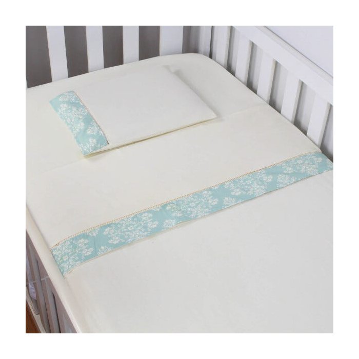Jogo 03 Peças Lençol + Fronha Ponto Palito para Berço Americano Nanna Baby - Provençal Verde
