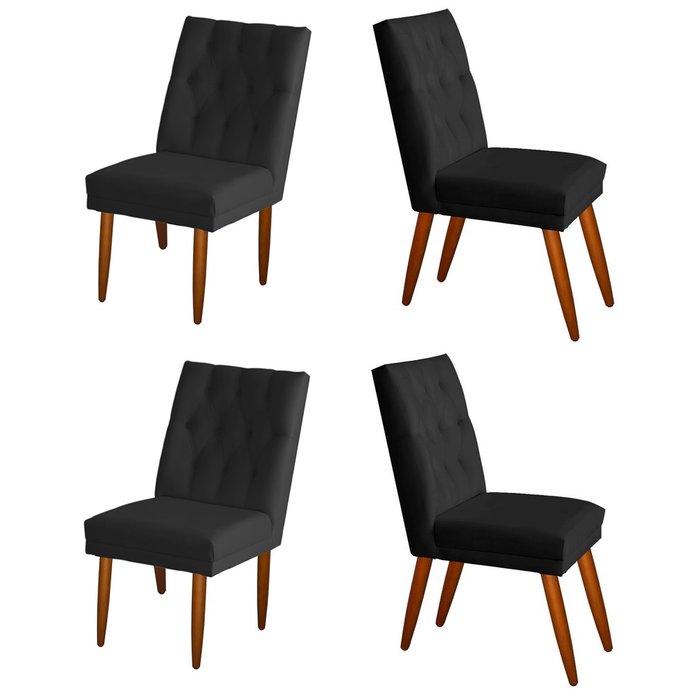 Jogo 04 Cadeiras de Jantar Estofada Cozinha Paris Suede Preto Eli Móveis