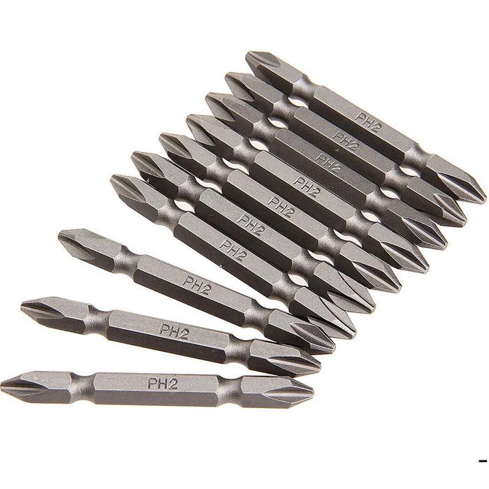 Jogo 10 pontas dupla bits Phillips 2 para parafusadeira em Aço Cromo Vanádio com Alta Qualidade.