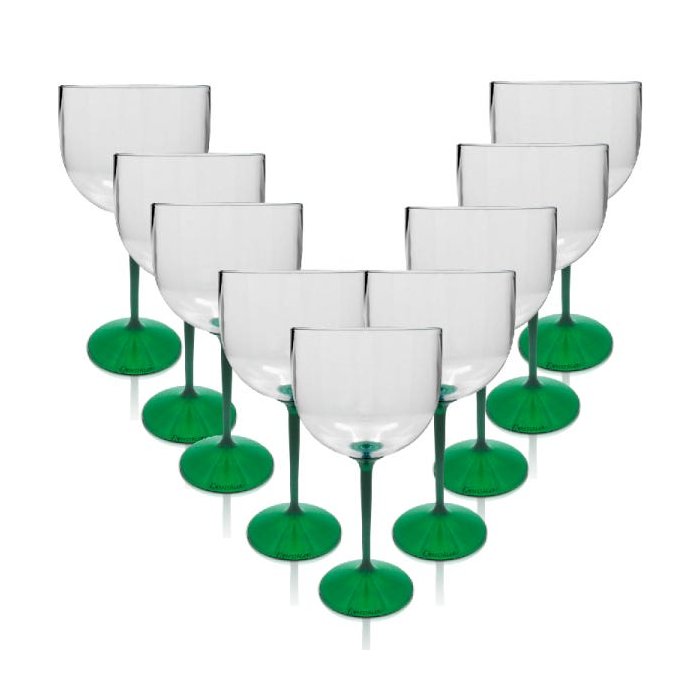 Jogo 10 Taças Acrílico Para Gin Tônica Base Verde