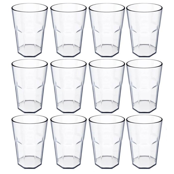O jogo com 12 copos transparentes de plástico, possui capacidade para 400ml cada. Perfeitos para o dia a dia, esses copos são leves, resistentes e de fáceis de manusear, ideais para servir bebidas como sucos, refrigerantes, água, chás gelados e drinks. Seu design transparente adiciona um toque de simplicidade e versatilidade a suas refeições.