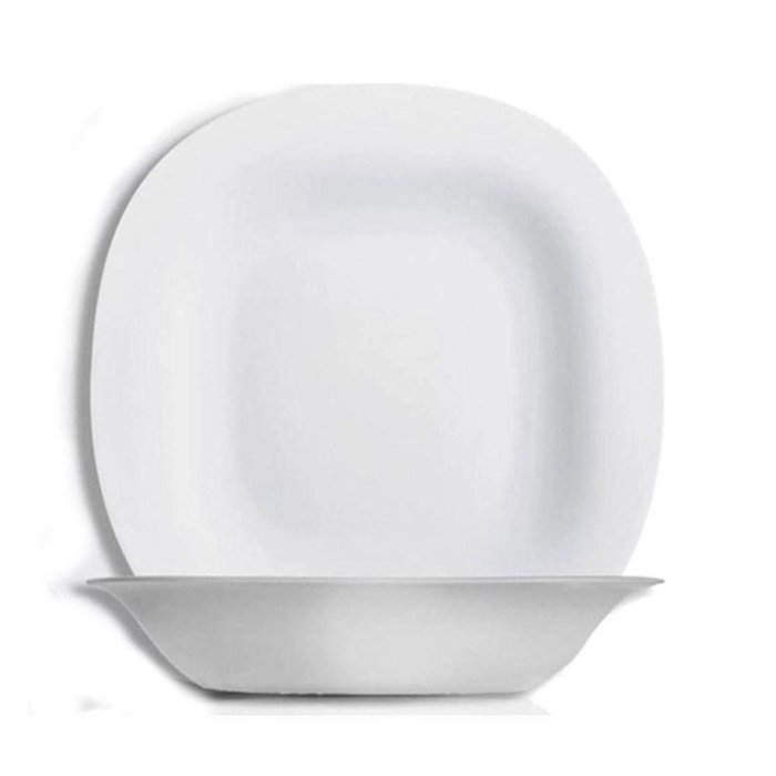Jogo 12 Prato Fundo Branco Quadrado Square 22cm Vidro Opalino Sopa Massas em Casa Tem
