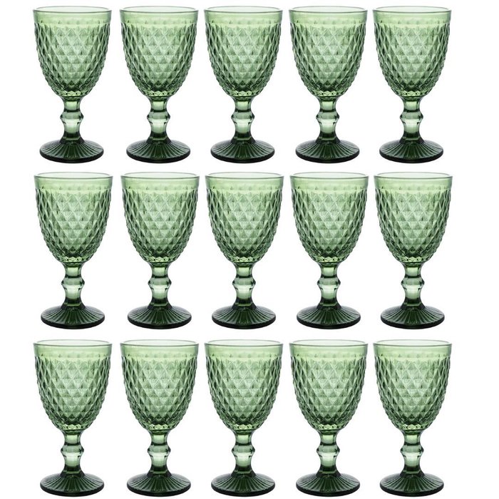Jogo 12 Taça Água Suco 325ml Diamond Vidro Bico Abacaxi Lyor Verde claro