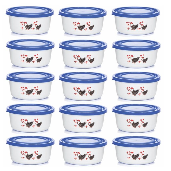 Jogo 15 Mini Potes Redondo Plástico Prime 270ml Galinha Angola - Ercaplast