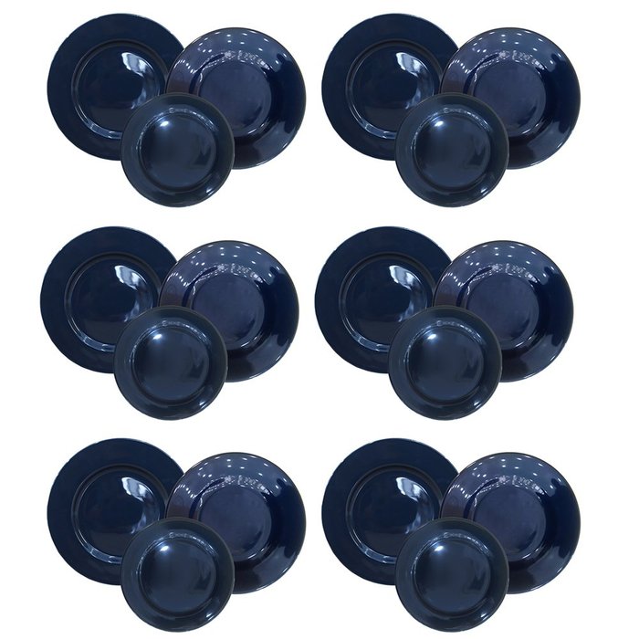 Jogo 18 Pratos Raso Fundo Sobremesa Azul Class Home