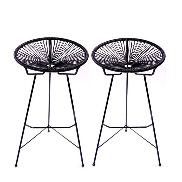 "Banqueta, fabricada em estrutura de aço maciço 1/2", com pintura eletrostática a pó, sobre uma elegante estrutura preta, com fios de fibra sintética.