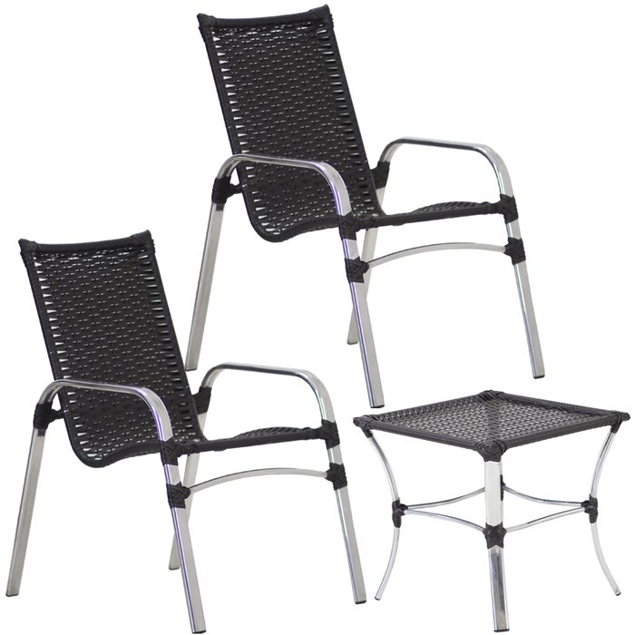 Jogo 2 Cadeiras e Mesa Area Piscina - Preto Preto