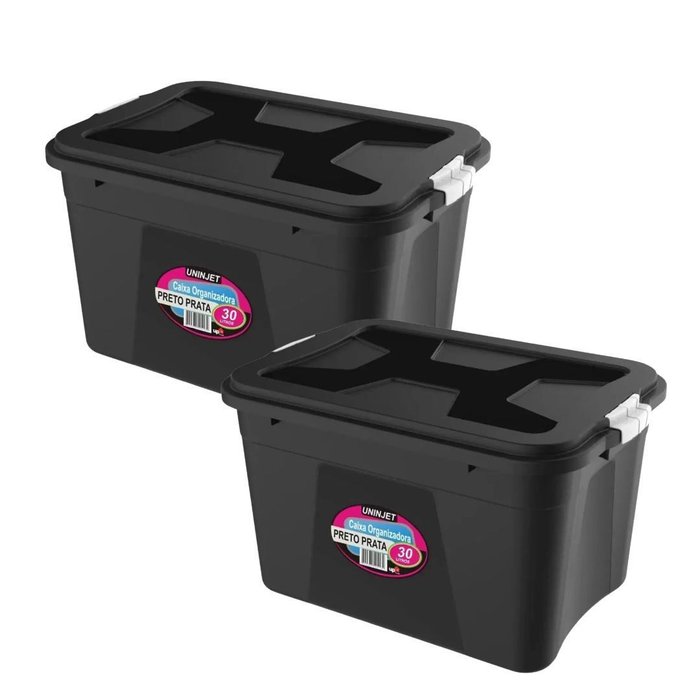 Jogo 2 Caixas Organizadora 30 Litros com Tampa e Trava Lateral - Uninjet Preta