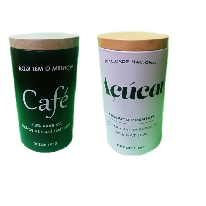Jogo 2 Latas Porta Mantimento Café Açúcar Redonda Branca e Preta Deixe sua cozinha, armário, bancada ou o seu cantinho do café com muito mais estilo armazenando e decorando com este kit de latas. Queremos possibilitar que sua casa tenha tanto produtos úteis para o seu dia a dia como bonitos e charmosos para compor sua decoração. O kit contém 2 latas Composição: Metal Dimensão Lata Café: 19 x 11 (alt x prof) Dimensão Lata Açúcar: 19 x 11 (alt x prof) Imagens meramente Ilustrativas