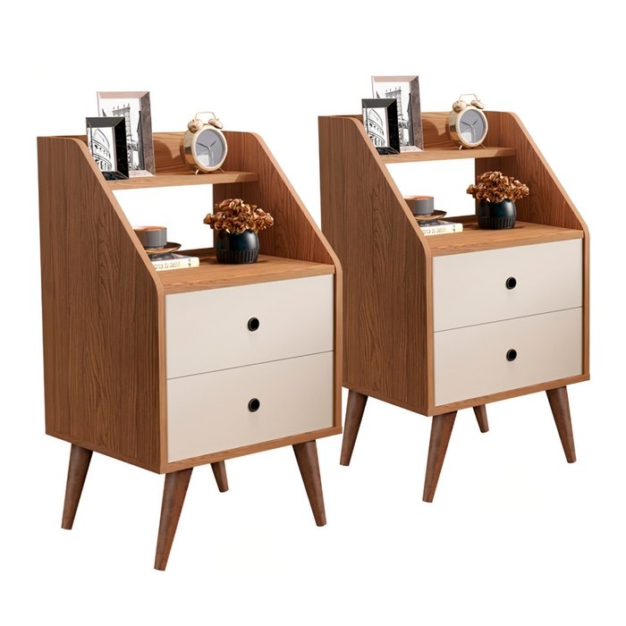 Jogo 2 Mesas de Cabeceira com Prateleira Florência Freijó Off White