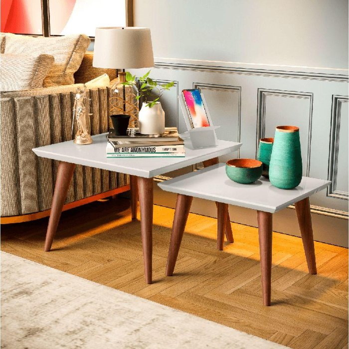 Jogo 2 Mesas Retro Canto Branco Sala Retro Branco