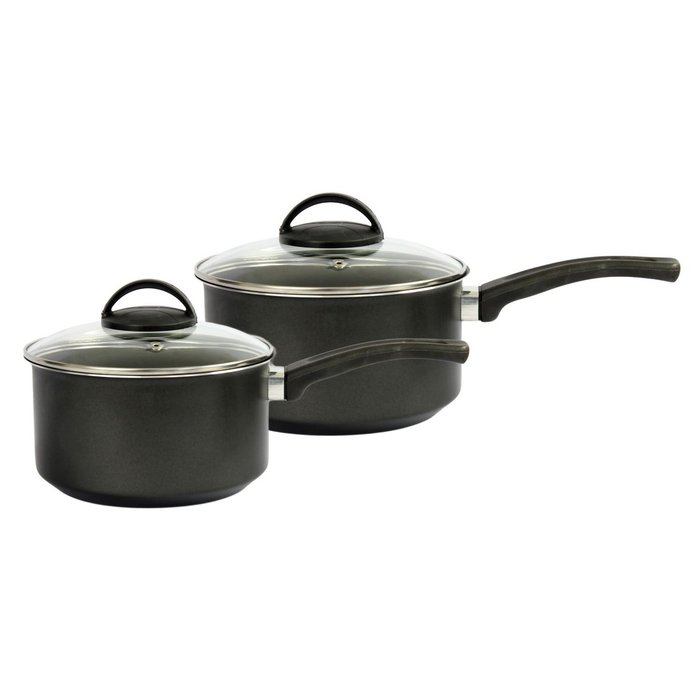 Jogo 2 Peças: 2 Panelas Antiaderentes com Tampas Pretas Preto