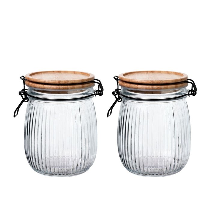 Jogo 2 Potes Vidro Hermético Versalhes Tampa Bambu Trava Black 800ml - Lehaví