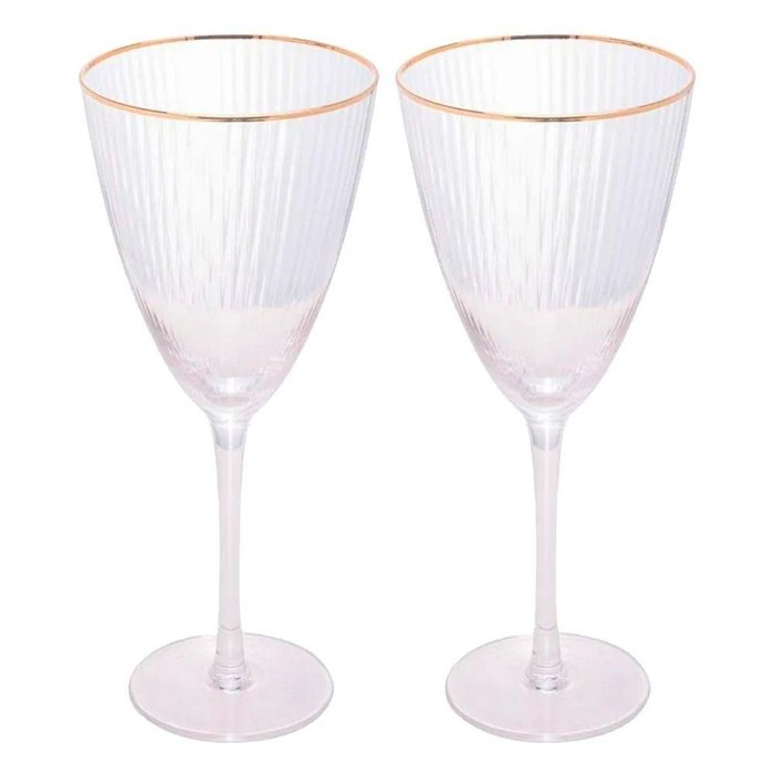 Jogo 2 Taças De Vinho Com Borda Dourada Lines Vidro Transparente 400ml Wolff
