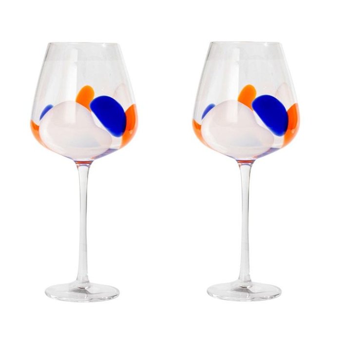 Jogo 2 Tacas P/vinho Petala Vidro 500m Laranja/azul/branco laranja/azul/branco
