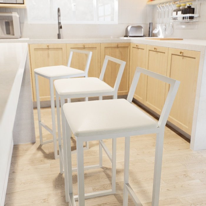Conjuntos 3 Banquetas Alta Branca Bar Balcão Bistrô Industrial Confort Com Assento Estofado