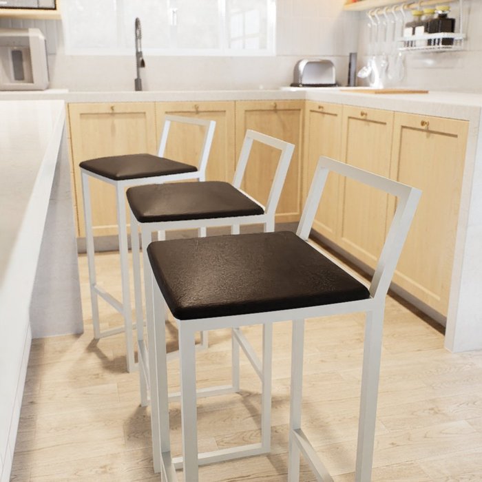 Conjuntos 3 Banquetas Alta Branca Bar Balcão Bistrô Industrial Confort Com Assento Estofado
