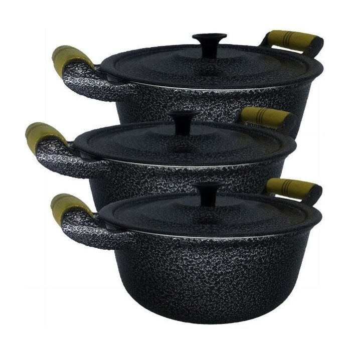 Jogo 3 Panelas Alumínio Batido Craqueada - 26 -28 -30