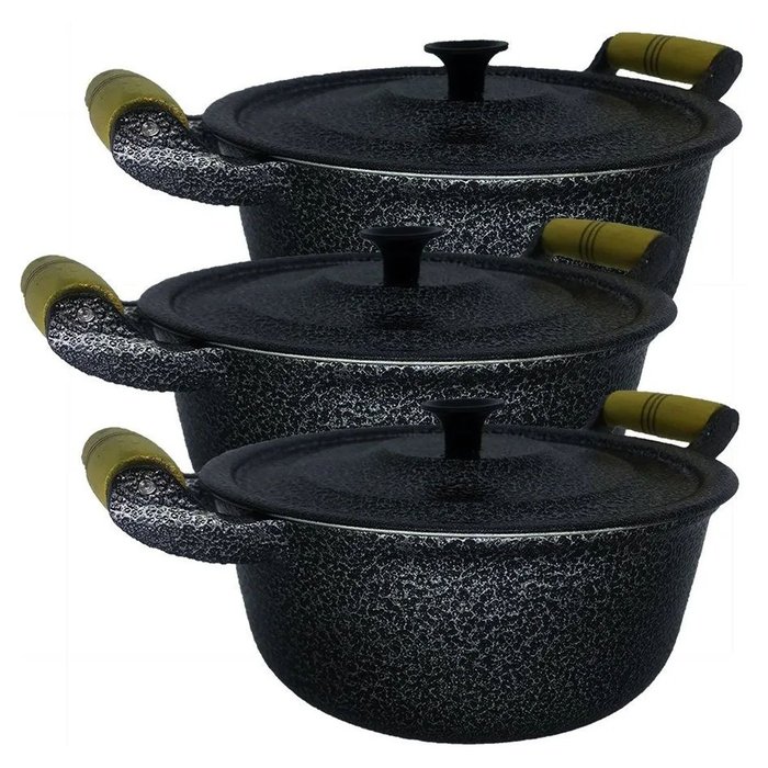 Jogo 3 Panelas Alumínio Batido Craqueada - 32 -34 -36 OkayShop