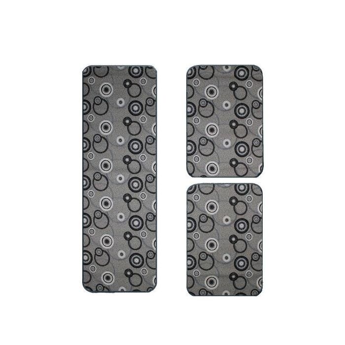 Jogo 03 Peças Tapete De Cozinha Cinza Cercles Antiderrapante