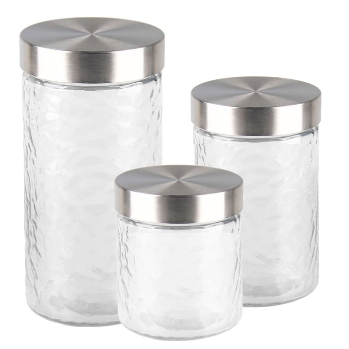 Jogo 3 Potes Porta Mantimento Vidro Transparente Texturizado Organic 850ml, 1200ml e 1700ml - Mek