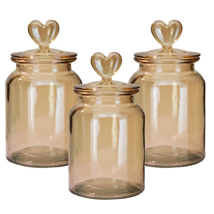 Jogo 3 Potes Vidro Hermético Âmbar Decor Afeto Coração 1 Litro - Tuut Âmbar