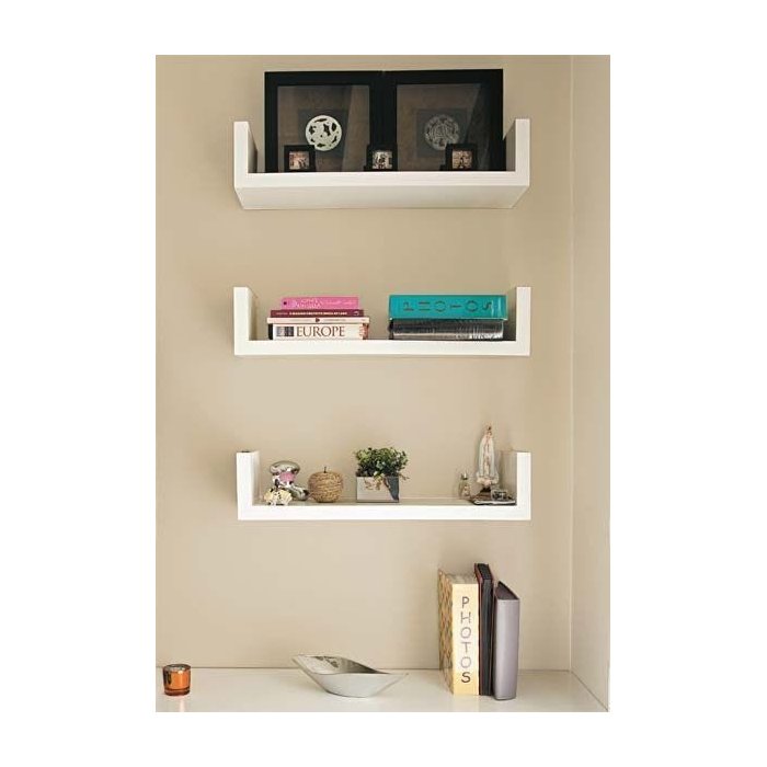 Jogo 3 Prateleira U 60cm Branco Nicho Livros Branca