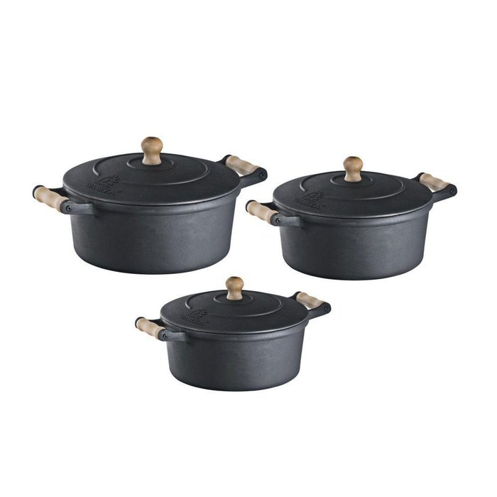Jogo 3 Und Caçarolas Ferro e Alça Madeira 5,9, 7,6 e 9,8 L