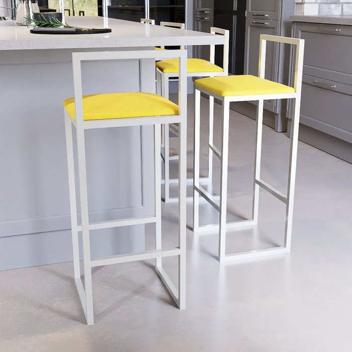 Jogo 4 Banqueta Alta Balcão Bistrô Industrial Branca Assento Estofado Amarelo