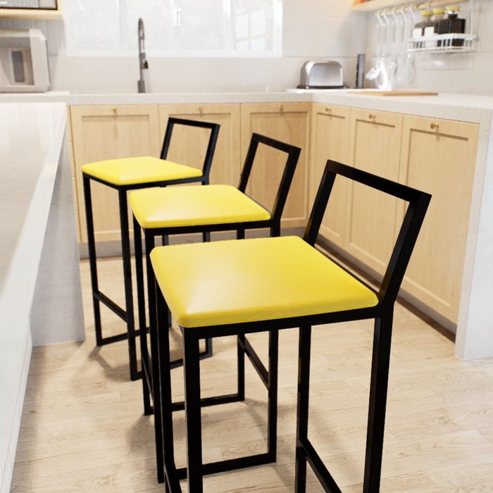 Jogo 4 Banqueta Alta Balcão Bistrô Preta Confort Ind Assento Estofado Don Castro Decor Amarelo