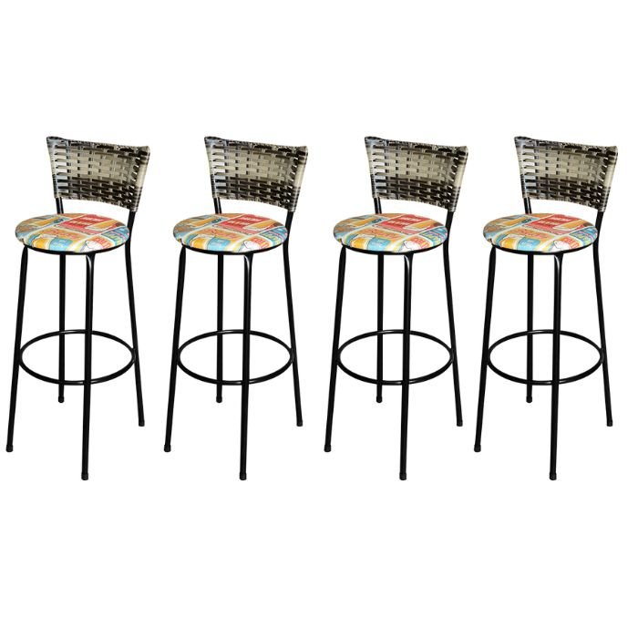Jogo 4 Banquetas Alta Para Cozinha Ratan Cappuccino Premium Preta Estofado Cerveja