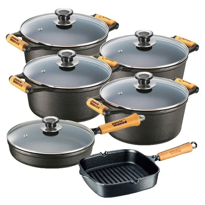 Jogo 4 Caçarolas E 2 Frigideiras Ferro Panela Mineira