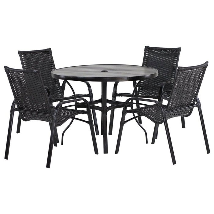 Jogo 4 Cadeiras Alumínio e Mesa Tampo Ripado 100cm Diâmetro para Área Jardim Varanda Piscina Emily Preto