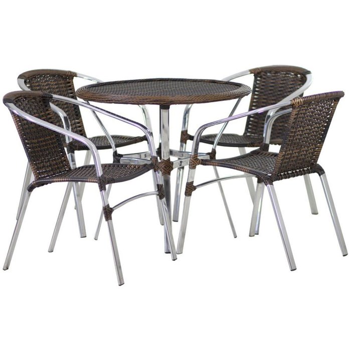 Jogo 4 Cadeiras Alumínio e Mesa Tampo Tramado Fibra Sintética para Jardim Piscina Varanda Floripa