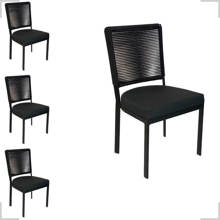Jogo 4 Cadeiras de Alumínio Corda Sintética Assento 50cm Alt Preto Preto