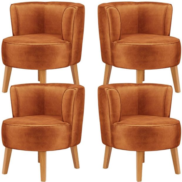 Jogo 4 Cadeiras para Sala de Espera Tecido Veludo Base Fixa Estrutura Reforçada Pés Retrô Terracota