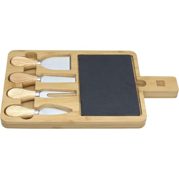 Jogo 4 Peças Para Queijo Home&co Com Tabua De Corte Em Ardosia Bambu Natural