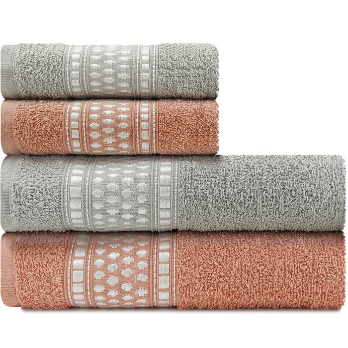 Jogo 4 Peças Toalhas Banho + Rosto 100 Algodão Nara Emcompre Atlântica CINZA CORAL
