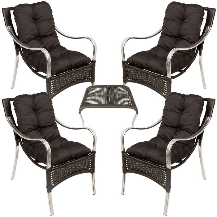Jogo 4 Poltronas e Mesa Guanabara em Aluminio para Área Externa, Piscina Trama Original Preto